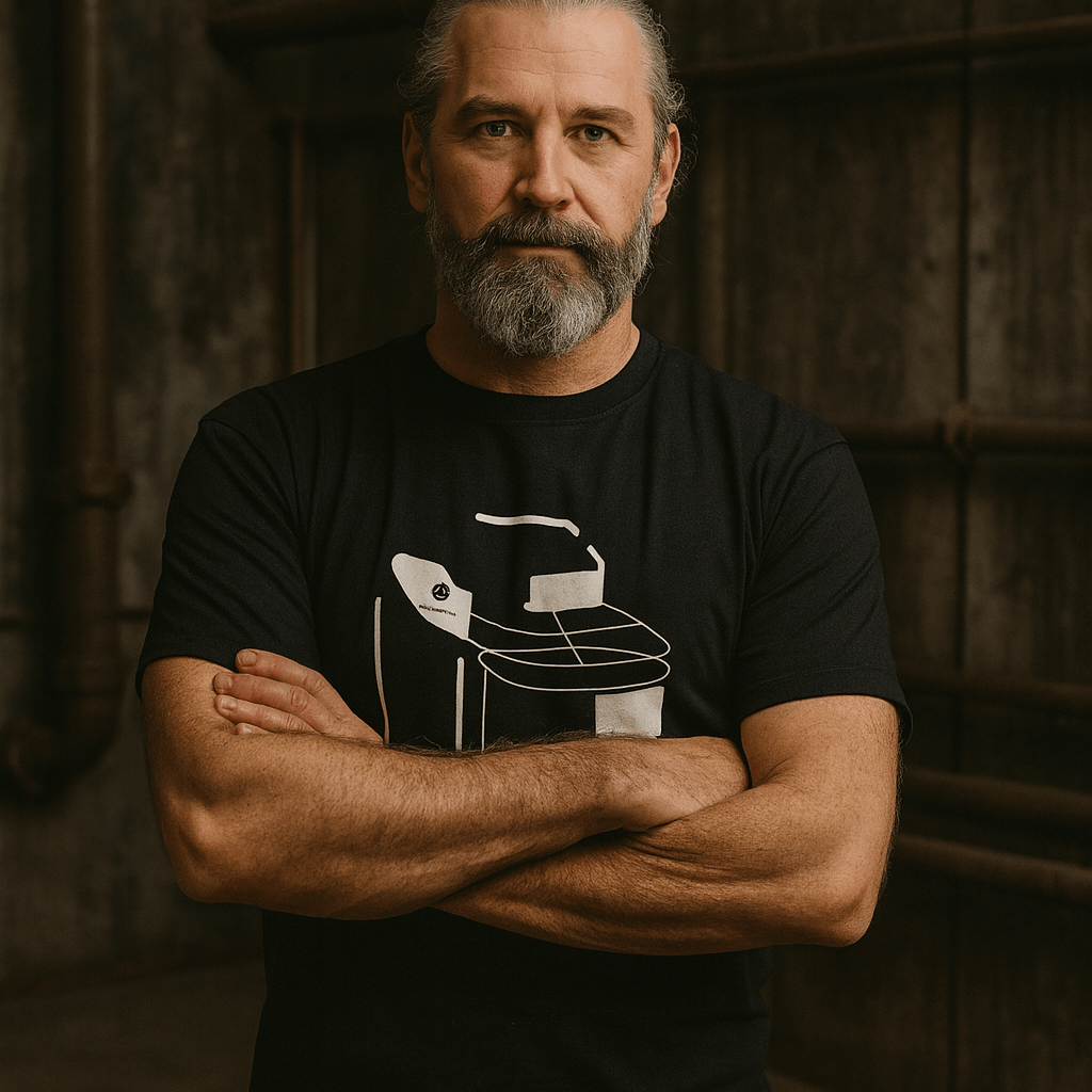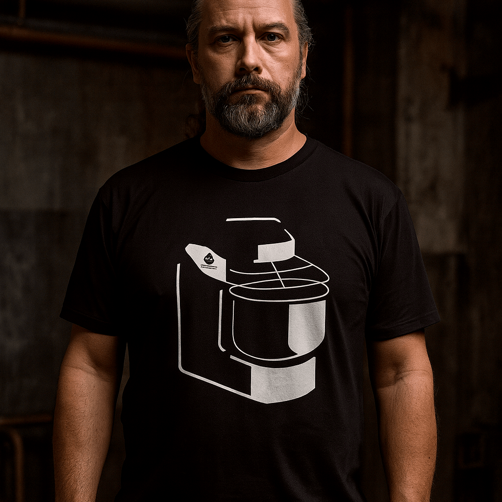 White on black, high quality vinyl printed short sleeve T-shirt with the Sunmix Evo silhouette on the front and 'sunmix' logo on the back.